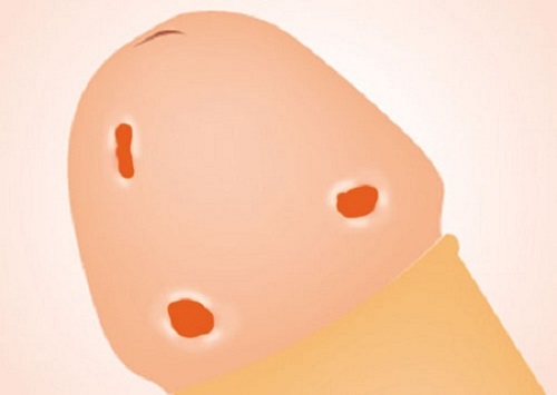 - Rãnh bao quy đầu xuất hiện những đám mụn nước, các đốm trắng hay vết màu đỏ. Đám mụn li ti này có thể là mụn mủ, lâu ngày sẽ chảy dịch khiến cho người bệnh luôn cảm thấy bị ngứa rát và đau đớn.